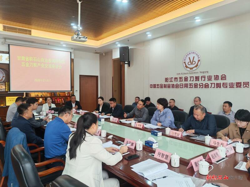 2月6日,广东阳江市阳东区与积石山县考察团召开招商引资交流座谈会。阳东区委副书记、区长胡志方,积石山县委副书记、县长马占彪出席会议。会上,阳东区介绍了经济社会发展情况,重点阐述了当地刀剪制造产业的集群规模、技术优势及国内外市场布局,积石山县介绍了基本县情、产业基础,着重分享了保安腰刀非遗传承现状及县域在“一带一路”节点中的区位价值。双方一致认为,阳东刀剪的制造实力和积石山县保安腰刀的非遗底蕴,是两地合作的核心纽带,将以此次交流为起点,进一步深化合作,通过人才互派、技术共建、渠道共享等方式,做好“非遗+”文章,打造“收藏+实用+文创”产品矩阵,共同构建“西有非遗、南有制造”的产业协同共同体。阳东区领导刘献阳、积石山县领导石彩荣,阳东区和积石山县各相关部门、协会负责人及非遗代表性传承人参加座谈会。