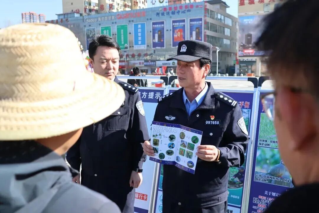 县公安局森林公安局民辅警聚焦涉林消费维权及生态保护相关内容,向群众普及野生动植物保护法律法规,讲解非法狩猎、非法收购、贩卖野生动植物及其制品的违法后果,引导群众自觉抵制非法野生动植物交易,树立绿色、健康的消费理念,共同守护辖区生态安全。